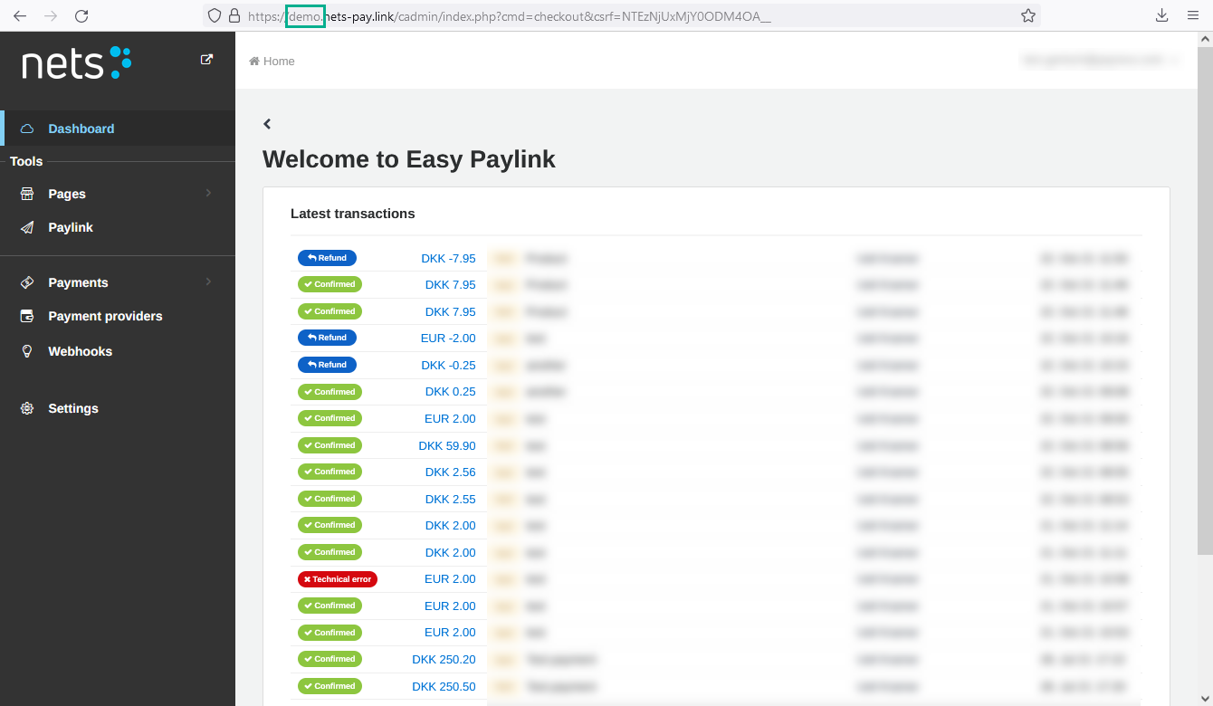 The Paylink instance name is your Checkout Paylink account name: If you access your Checkout Paylink payment page with demo.nets-pay.link, the Paylink instance name would be demo.