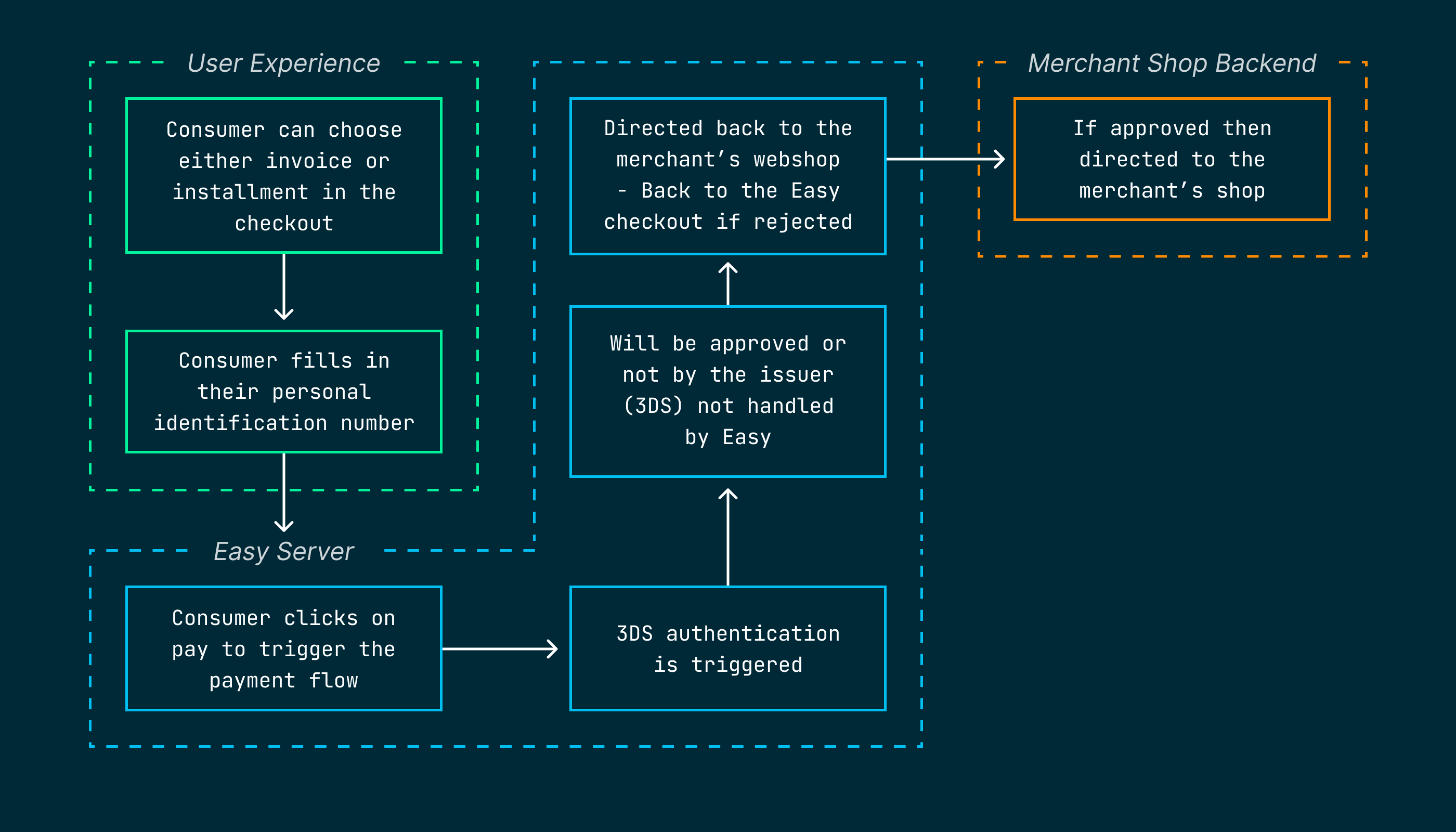 The following diagram below shows the user journey for invoice and installment payments: